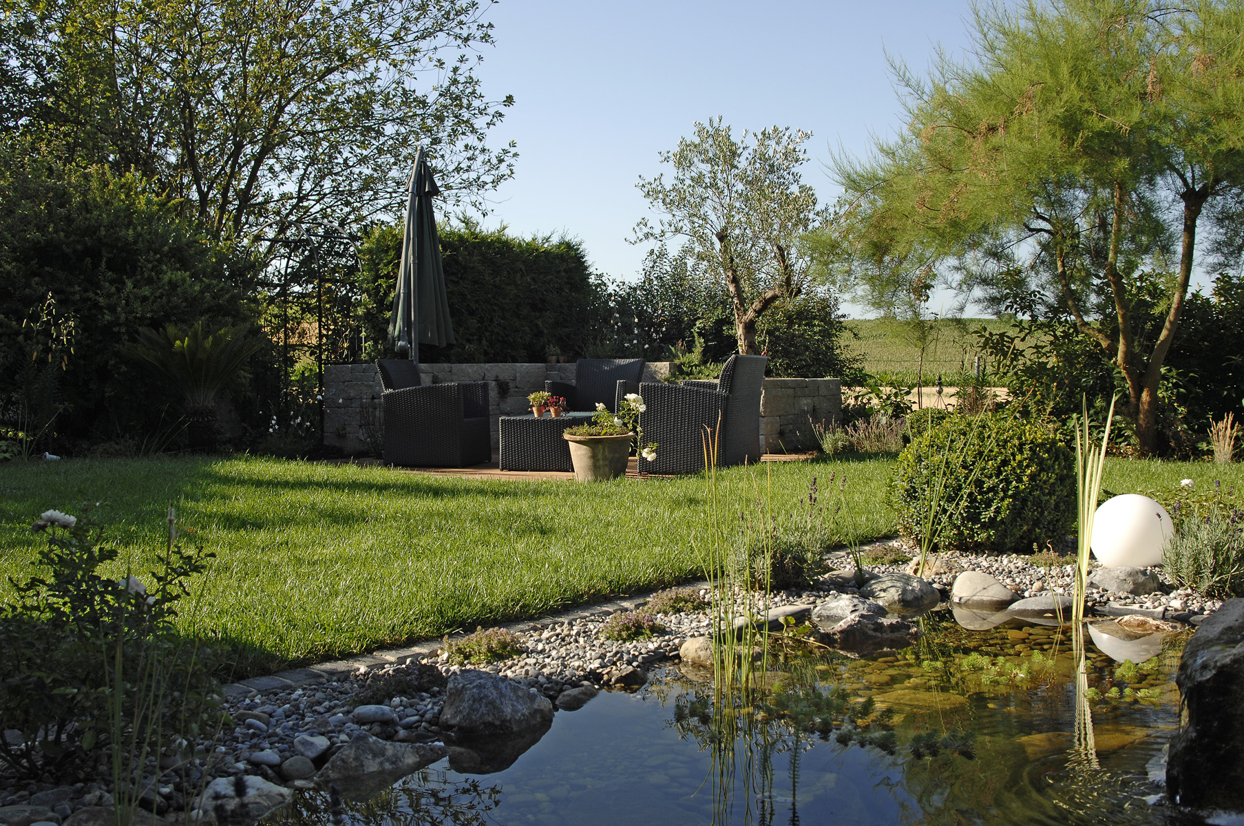 Rasen- und Teichanlage
